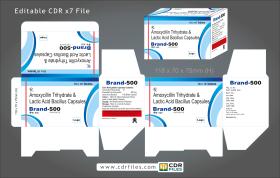 Amoxycillin Trihydrate & Lactic Acid Bacillus Capsules Design 05 Pharma Box cdr Packaging CDR Free Edtitable Design